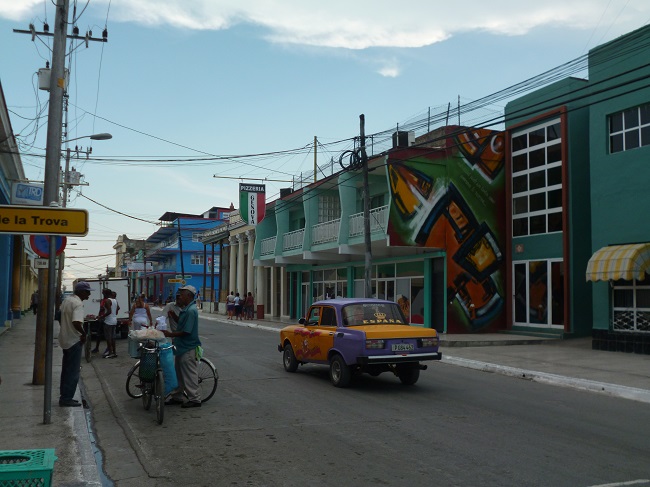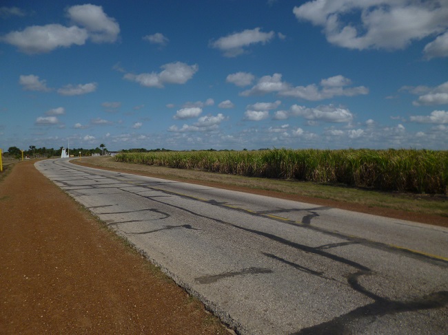 Von Sancti Spiritu aus nehme ich die carretera central, die Hauptstasse von Habana nach Santiago de Cuba, die einmal quer mitten durch Cuba verlaeuft. Leider endet die Autopista (Autobahn, Fahrraeder duerfen diese in Cuba offiziell benutzen) mit drei Fahrspuren in jeder Richtung in der Naehe von Sancti Spiritu und es verbleibt eine schmale Landstrasse mit zu viel Verkehr. Immerhin werden Radfahrer als vollwertig Verkehrsteilnehmer akzeptiert und LKW-Fahrer verhalten sich sehr zivilisiert. Da bin ich von Africa anderes gewohnt. Ein Zwischenfall ereignet sich auf meinen ersten drei Radetappen. Da bin ich nun endlich endgueltig von zu Hause ausgezogen und dann dann das: Am fruehen Morgen bin ich kurz davor loszuradeln, da spricht die wirklich nette Dame der casa zu mir: Es ist noch kuehl am Morgen, zieh dir noch etwas drueber. Que cosa... So! Und nun muss ich noch eine Beschwerde loswerden. Bei meinem ersten Rundgang durch Camagüey, der drittgroessten Stadt Cubas, stehe ich ploetzlich mitten auf einer belebten Shopping-Meile, auf der Cubaner mit prall gefuellten Tueten flanieren, und spaeter entdecke ich auch noch ein Fitness-Studio. Und das alles in Meinem Cuba...