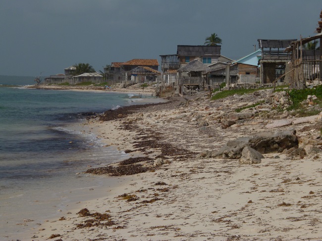 Zufaellig und abseits der ueblichen Touristenrouten gelangte ich an einen der faszinierendsten Orte, die in Cuba aktuell noch verbleiben. Ich suchte einen Strand und fand ein Fischerdorf, das einer Geisterstadt aus einem amerikanischen Western glich. Die palmgedeckten Daecher dort sind genauso zottelig wie die herumstreunenden Hunde. Beim genaueren Hinsehen bemerkte ich, dass die Haeuser keineswegs verlassen sondern zum Grossteil noch bewohnt waren. Hier hat Cuba seinen morbiden Charme noch nicht verloren. Ein aeusserst dicker Cubaner (Gewicht ca. 0,2 to) namens Ariel empfing mich freundlich und erklaerte mir, er sei der Chefaufseher des Ortes und kuemmere sich um die nicht vorhandenen Touristen. Es gebe etwa 4-5 Restaurants im Ort, wir kamen gerade an einem vorbei, dies sei das Beste. Zumindest fiel die ueberdachte Terrasse des Etablissements dadurch ins Auge, dass sie den Eindruck vermittelte, jemand habe sich bemueht, dem voelligen Verfall entgegen zu wirken. Ob ich dort nicht etwas essen wolle. Doch ich wollte noch an einen vier Kilometer entfernten Strand, der noch einsamer sein sollte. In einem Nebensatz erwaehnte Ariel zum Schluss noch, auch er habe ein Restaurant, es sei zwar nicht das Beste aber einen Ticken billiger. Ich koenne auf dem Rueckweg gerne dort essen. Wir kamen auch dort vorbei. Das kleine geduckte Haus war genauso verwittert, verwahrlost und verfallen wie der Rest des Dorfes, doch davor hatte jemand ein nagelneues modernes Schild mit der Aufschrift "Restaurant" in den Sand gepflanzt. So einfach kann man in Cuba ein Restaurant eroeffnen...