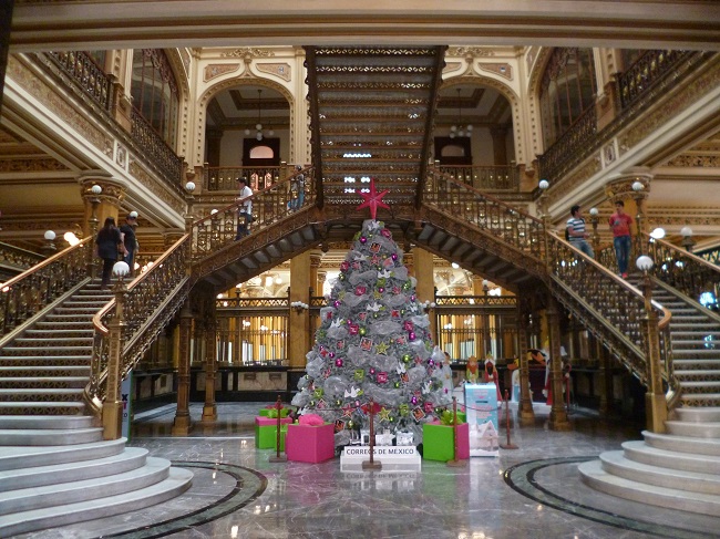 Weihnachtsbaum verschandelt historische Hauptpost in Mexico D. F.