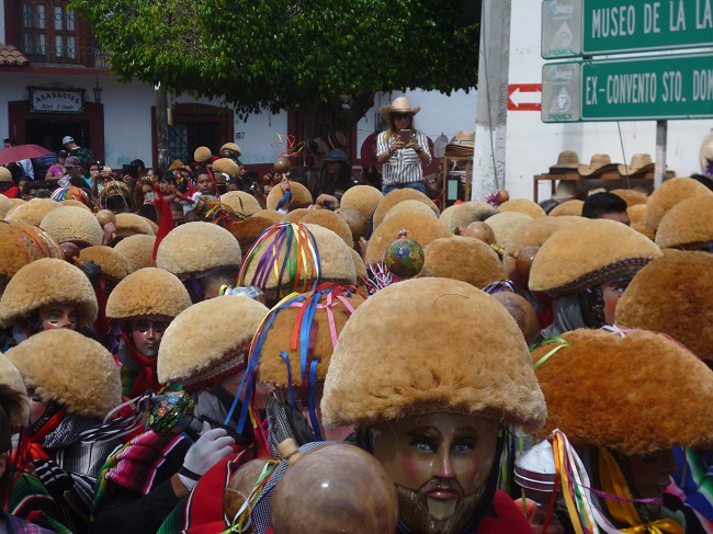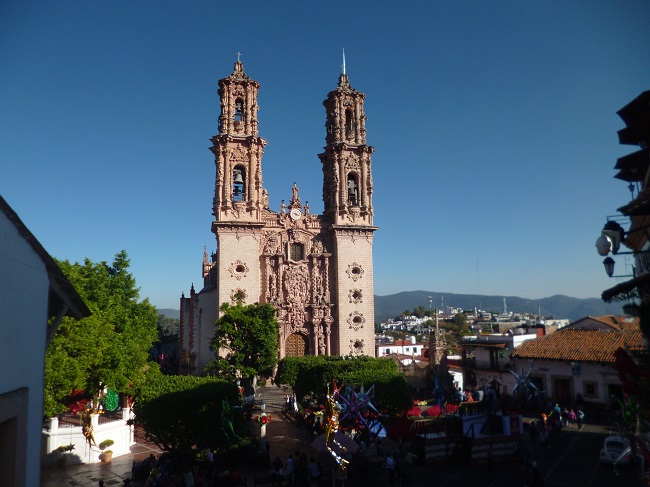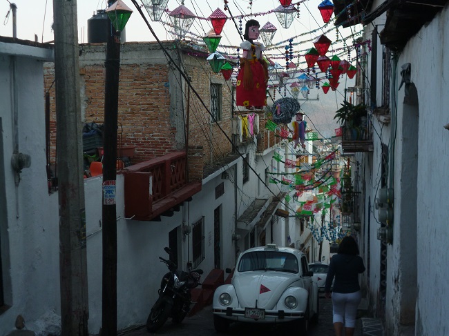 Die Ciudad de Mexico verlassend ist mein erstes Ziel Taxco, eine alte Silberminenstadt, die spektakulär an einem steilen Berghang gebaut ist. Die Silbermine wurde schon vor Jahrhunderten aufgegeben und heutzutage beherbergt die Stadt mehr Silberschmuckgeschäfte als Einwohner. Prächtige weiß getünchte Kolonialbauten, steile enge Kopfstein gepflasterte Gassen und eine atemberaubende Kirche prägen dieses Freilichtmuseum. Als offizielle Taxis verkehren ausschließlich schneeweiße und elfenbeinweiße uralte VW-Käfer, bei denen ausnahmslos der Beifahrersitz abhanden gekommen ist. Ein scheinbares Idyll. Zu meiner Ankunft wird wie schon zuvor in der Hauptstadt der Jungfrau von Guadalupe gehuldigt. Sie hat eine eigene Kirche und zieht die Massen an wie sonst nichts in Mexico. Die Art der Huldigung ist jedoch von sehr weltlicher Art: Fressbuden und ein spektakuläres Feuerwerk, an einem etwa 15 Meter hohen Holzgerüst. Zu Beginn und zum Ende werden jeweils einige Mega-Böller in den Himmel gejagt. Halleluja.