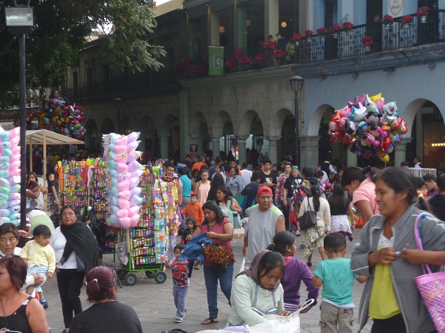Die Überschrift sollte ich präzisieren: la vida mexicana es un mercado. Überall, wo man in Mexcico hinkommt sind Märkte. Natürlich hat jede mexicanische Stadt diverse offizielle Märkte, doch darüber hinaus finden an allen erdenklichen Orten und zu jederzeit immer wieder Märkte statt. Als Außenstehender könnte man meinen, diese entstünden spontan und chaotisch. Erst säumen ein paar einzelne Buden den Straßenrand, einige verzweifelt hupende Autos kommen aufgrund wuselnder Mexicaner nicht mehr voran, dann drängen sich Menschenmassen, Verkäufer preisen ihre Waren, jeder mögliche Flecken ist von irgendwelchen Marktbuden oder sich aneinander vorbeiquetschenden Menschen okkupiert. Ich wundere mich dann, wo ist die Straße hin, die auf meinem Stadtplan verzeichnet ist. Wo sind die Gebäude und wohin ist die Stadt verschwunden?