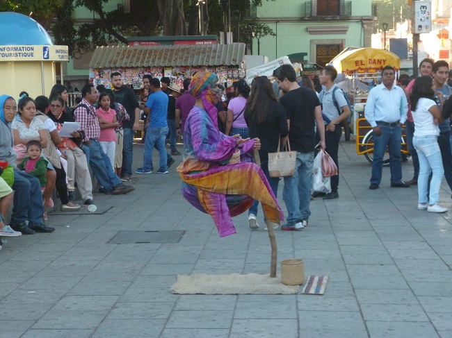 Was das große Mexico City hat, möchte das kleine Oaxaca auch haben: eine Eislaufbahn auf dem Zocalo (zentraler Platz). Kleine unbedeutende klimatische Details wurden bei dem Vorhaben ausgeblendet. Während Mexico City auf beachtlichen 2400 Metern liegt und es entsprechend kalt wird im Winter, herrschen in dem Tausend Meter tiefer liegenden Oaxaca doch eher subtropische Temperaturen vor. So mussten fleißige Helfer bei 28 Grad im Schatten mit Schiebern große Wassermassen vom Eis schrubben. Der Oaxacaner fremdelte ein wenig mit dem exotischen Spaß. Während die große Zuschauertribüne bis auf den letzten Platz besetzt war und an den anderen Seiten Massen von Schaulustigen sich die Beine in den Bauch standen, wagten sich nur wenige wenig Wagemutige auf die Eisfläche. Die große, nasse, glatte Fläche blieb verwaist, während sich kleinere Grüppchen im Uhrzeigersinn an der Bande entlanghangelten. So viele Zuschauer für so wenig Spektakel.