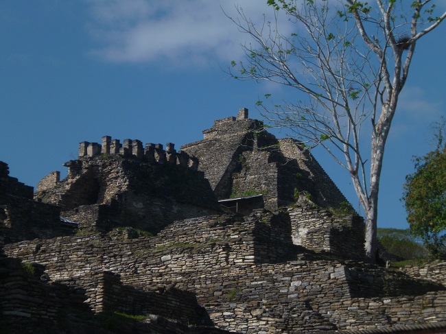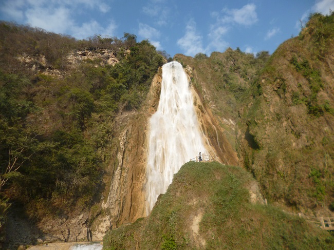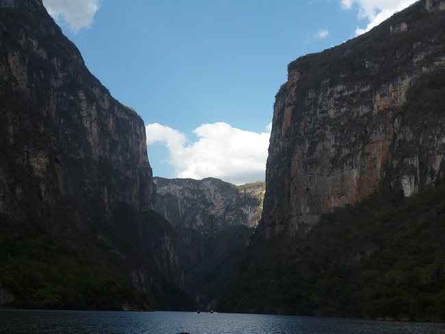 Chiapas brachte uns eine neue Reiseweisheit: Je abgelegener und weniger touristisch die Ziele waren, desto schöner und spektakulärer entpuppten sie sich. Wir besuchten die Wasserfälle El Chiflon / velo de novia, die Seen lagos de Colon sowie die Ruinen Tonina und Yaxchilan. Letztere sind mitten im Dschungel an der Grenze zu Guatemala. Dorthin führt keine Straße, sondern man muß von dem abgelegenen Weiler Frontera Corozal ein kleines Motorboot nehmen, mit dem man etwa 40 Minuten auf dem Rio Usumacinta fährt, bis man die Ruinenstätte erreicht. Auf dem Weg nach Frontera Corozal in einem colectivo wurden wir von Protestierenden, die mal wieder gegen irgendetwas protestierten und die die Straße mit einem Nagelbrett blockierten, gestoppt. Doch wir hatten Glück, der Fahrer diskutierte mit den Protestierenden und erklärte ihnen, dass es sich nicht um einen Touristenbus handele sondern um einen regulären colectivo. So durften wir passieren.