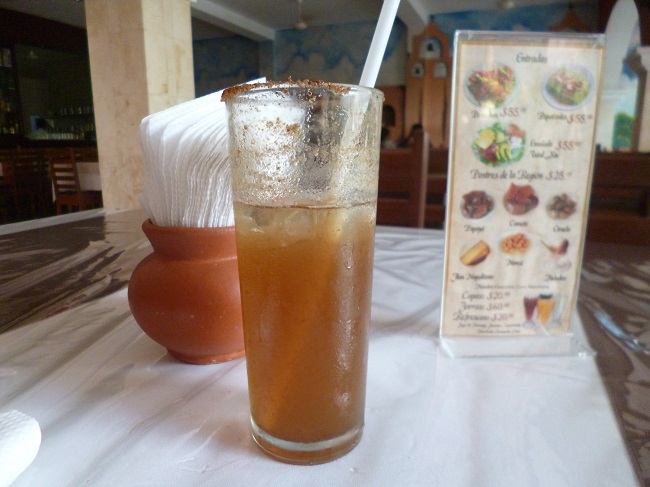 Ein säuerlicher Zwiebel-Tomaten-Knoblauch-Geschmack mit leichten Vanillenoten im Abgang. Das Bier ließ sich nicht mehr rausschmecken. Wer also partout kein Bier mag, dem sei dieser Drink empfohlen. Da ich mir einbildete, man könne Mexico nur richtig erleben und verstehen, wenn man mal eine komplette Michelada getrunken hat, leerte ich das Gesöff bis auf den letzten Tropfen.